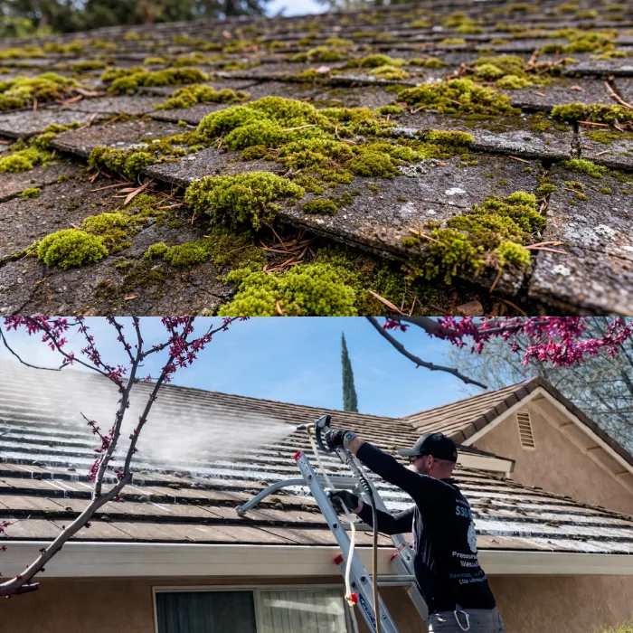 Our roof cleaning service covers asphalt shingles, clay tile, concrete tile, and metal roofing systems, and every job is handled by trained technicians with full insurance coverage and property protection measures in place.